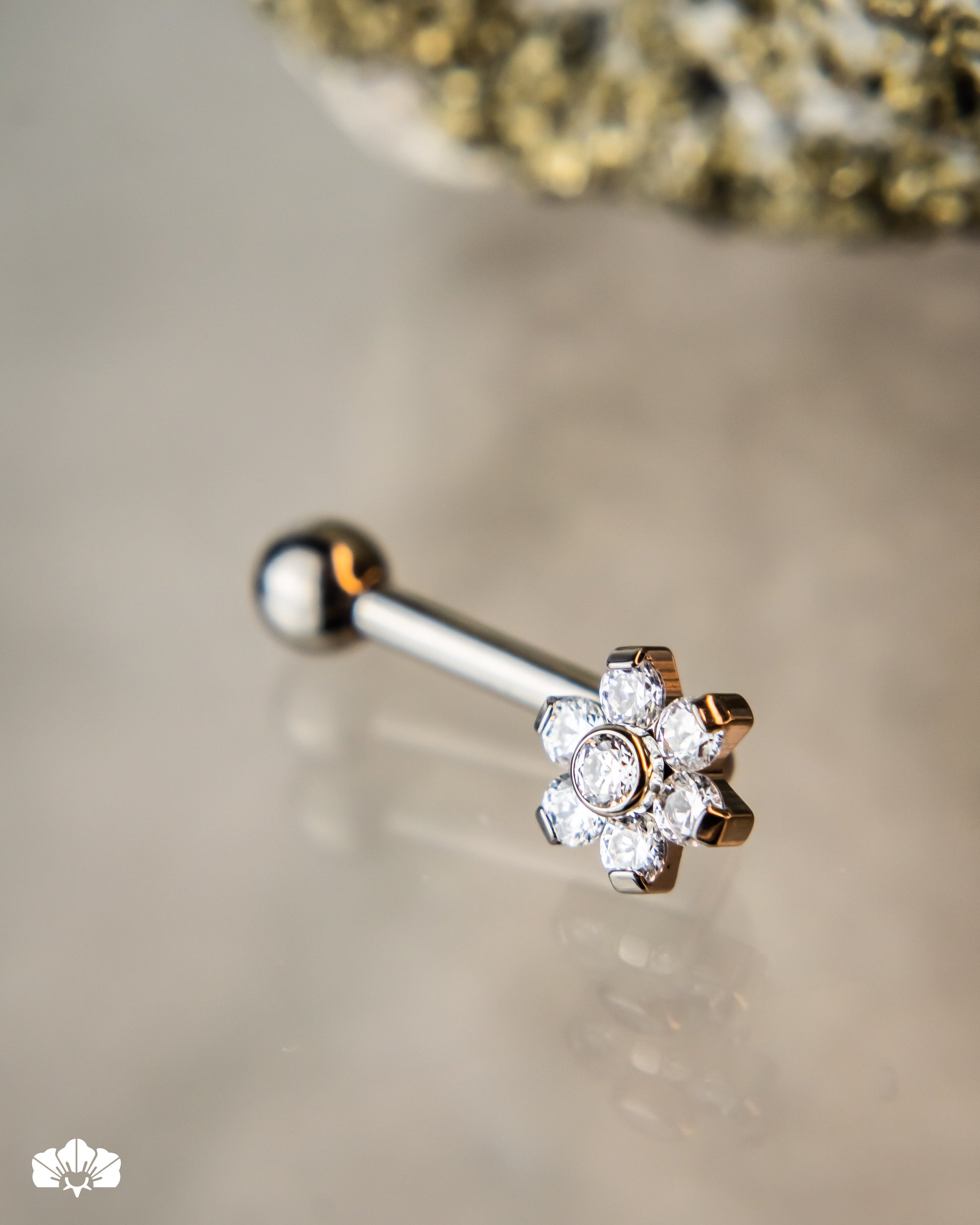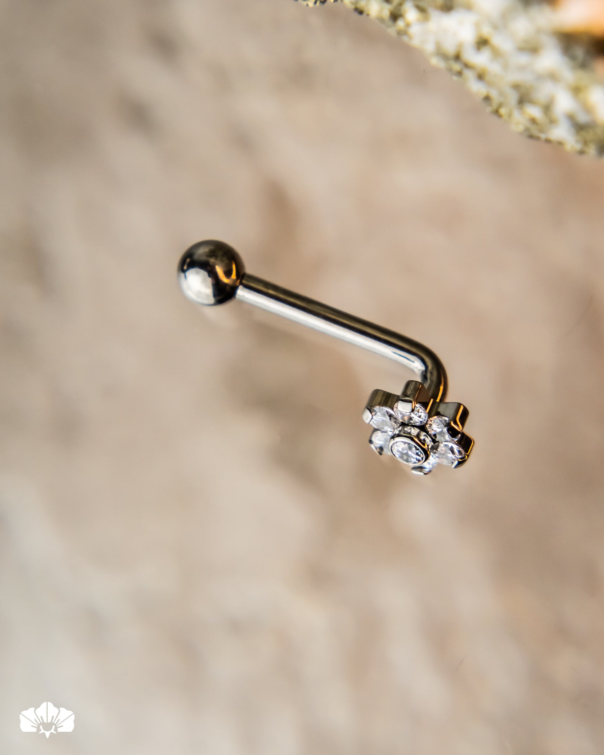 Joya en titanio grado implante certificado con engaste de cristales Swarovski para la perforación en zona intima christina