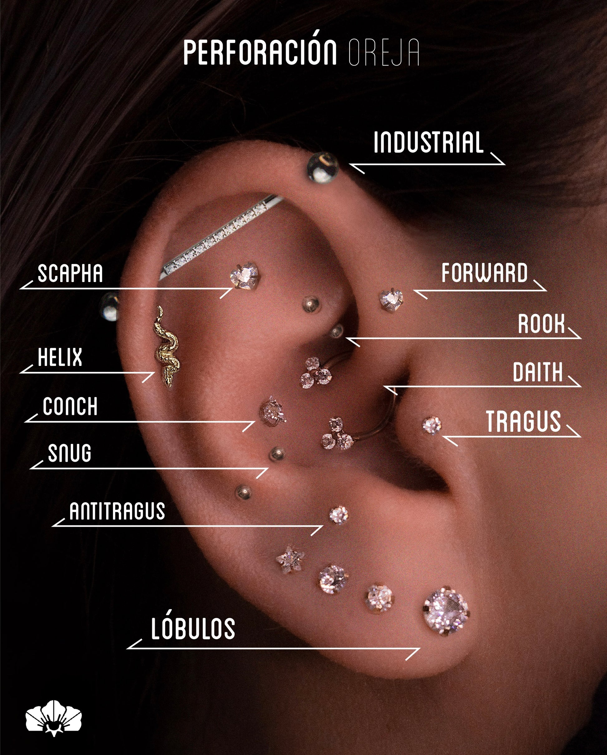 Ideal para las perforaciones: oreja: helix, scapha, forward helix, tragus, conch, lobulos - nariz: nostril - boca: philtrum, labret